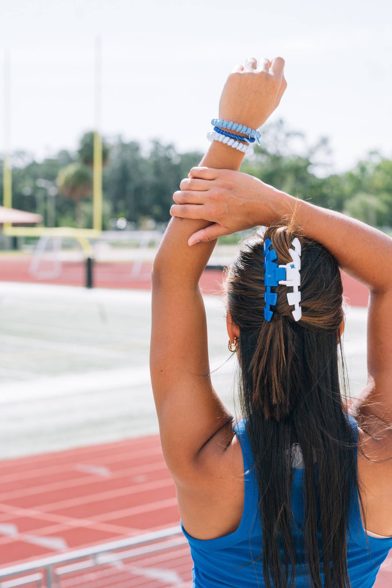Say goodbye to breakable hair clips! We have perfected the hair tie and now have re-invented the clip. Each clip has bendable teeth that take back to shape, they work on all hair types and have a strong hold. Hold your hair and enhance your style with the new University of Kentucky TELETIES hair Clip! Go Cats!