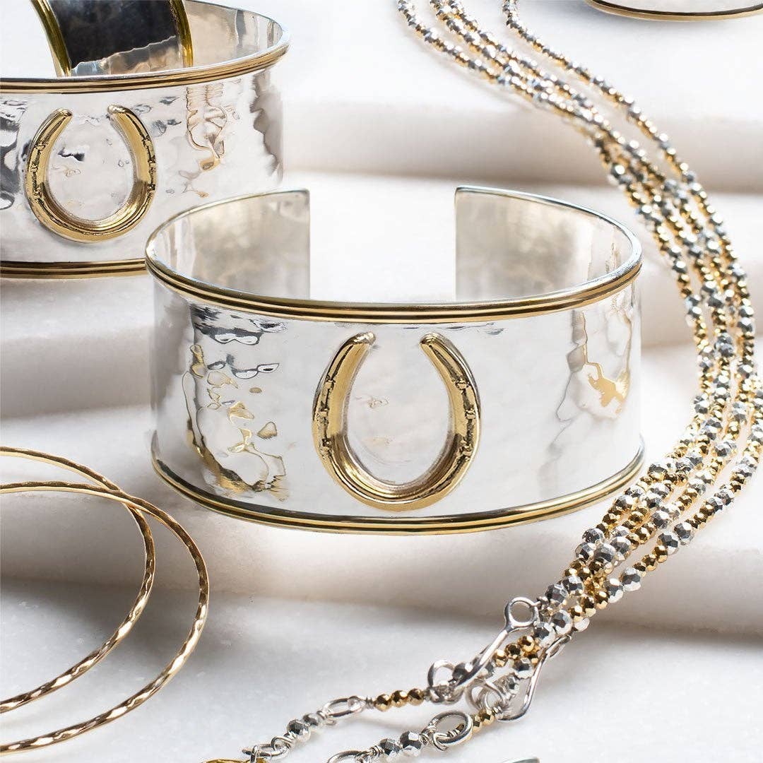 The Cody horseshoe cuff is our latest obsession! With hammered silver profile and hand cast horseshoe and ridges - the cuff was designed to give a modern twist to equestrian jewelry. We first designed the "ponytail cuff" and was so excited how nice it came out everyone said you have to make this for your wrist...so we did!