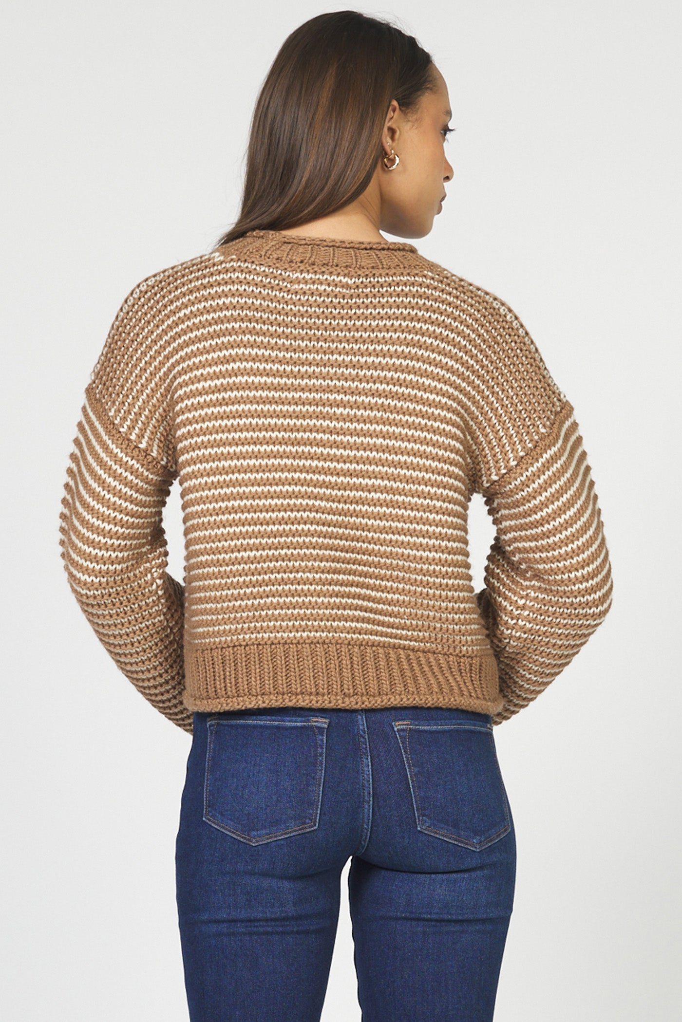 Get cozy in style this fall with the Dear John Pasquette Sweater in a warm mocha stripe pattern. Made with the perfect tone for the season, this sweater will keep you comfortable and fashionable. Hurry and grab one before the temperatures drop!