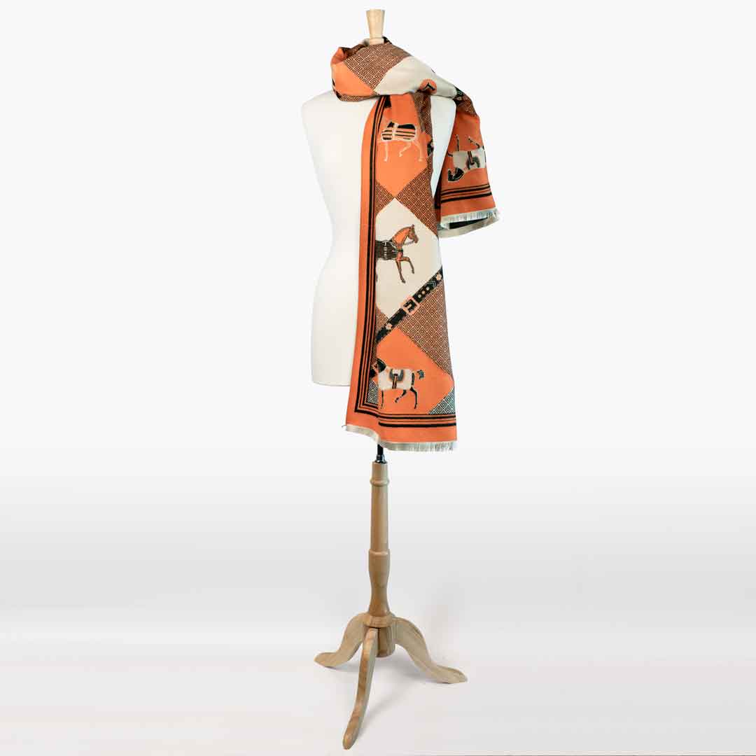 Della - Tangerine Equestrian Motif Luxe Shawl