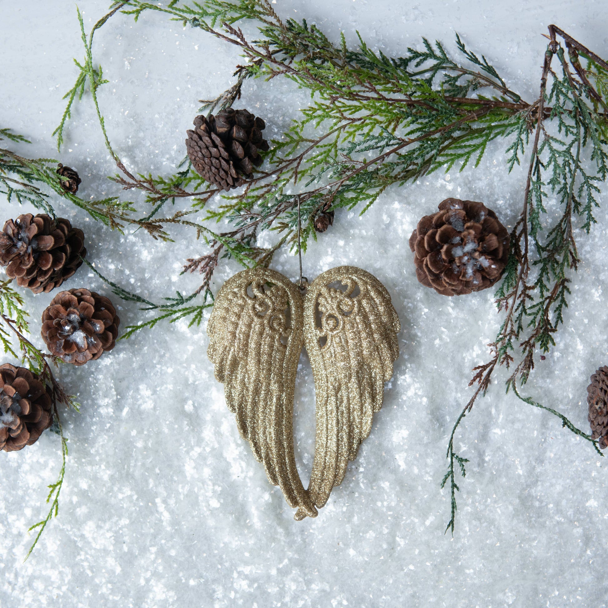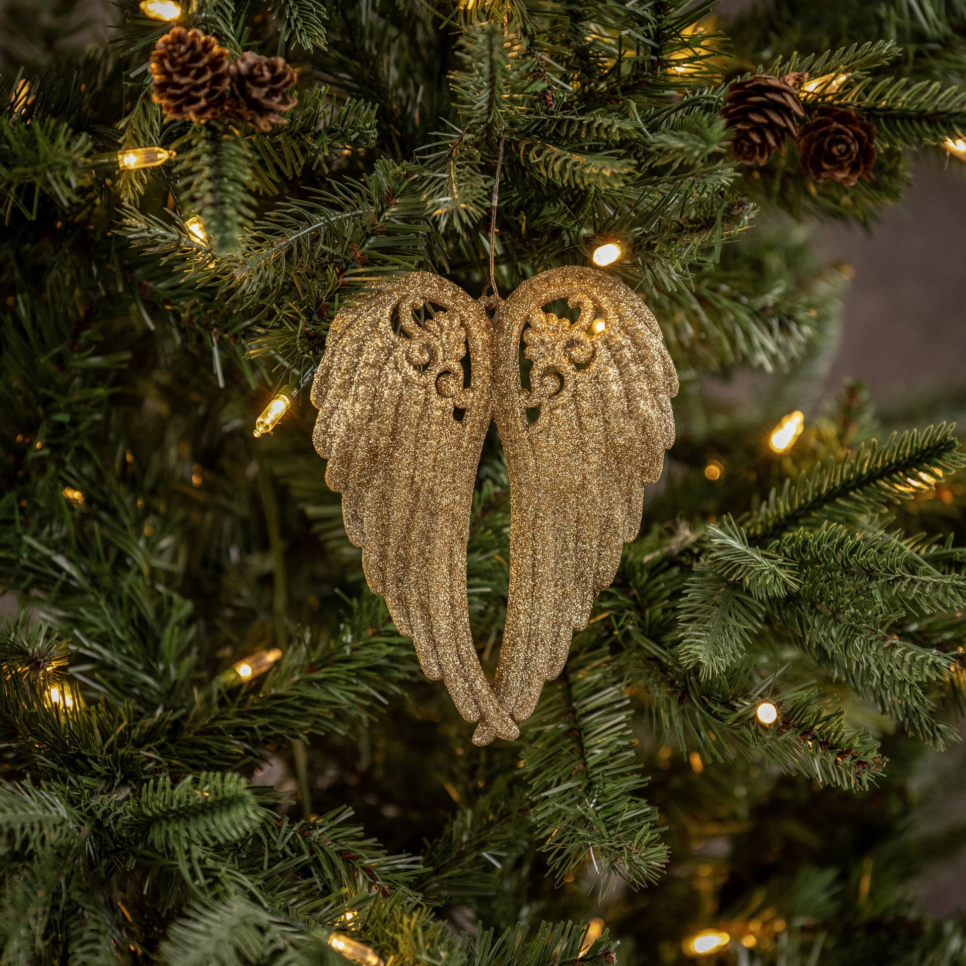 GLITTERED GOLD CLOSED ANGEL WING ORNAMENT