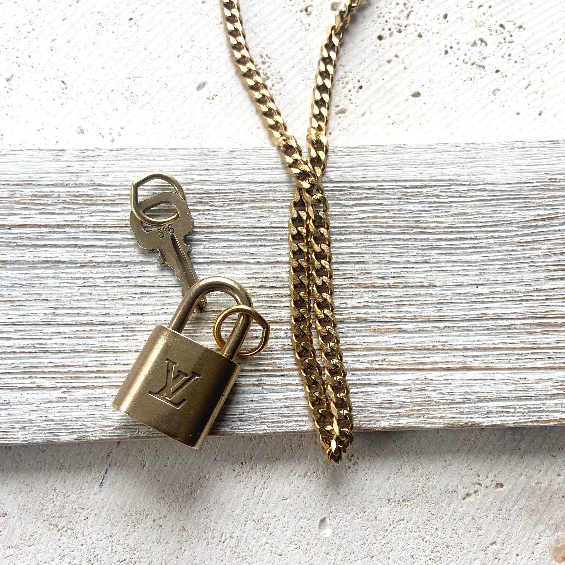 Louis Vuitton upcycled repurposed lock key necklace