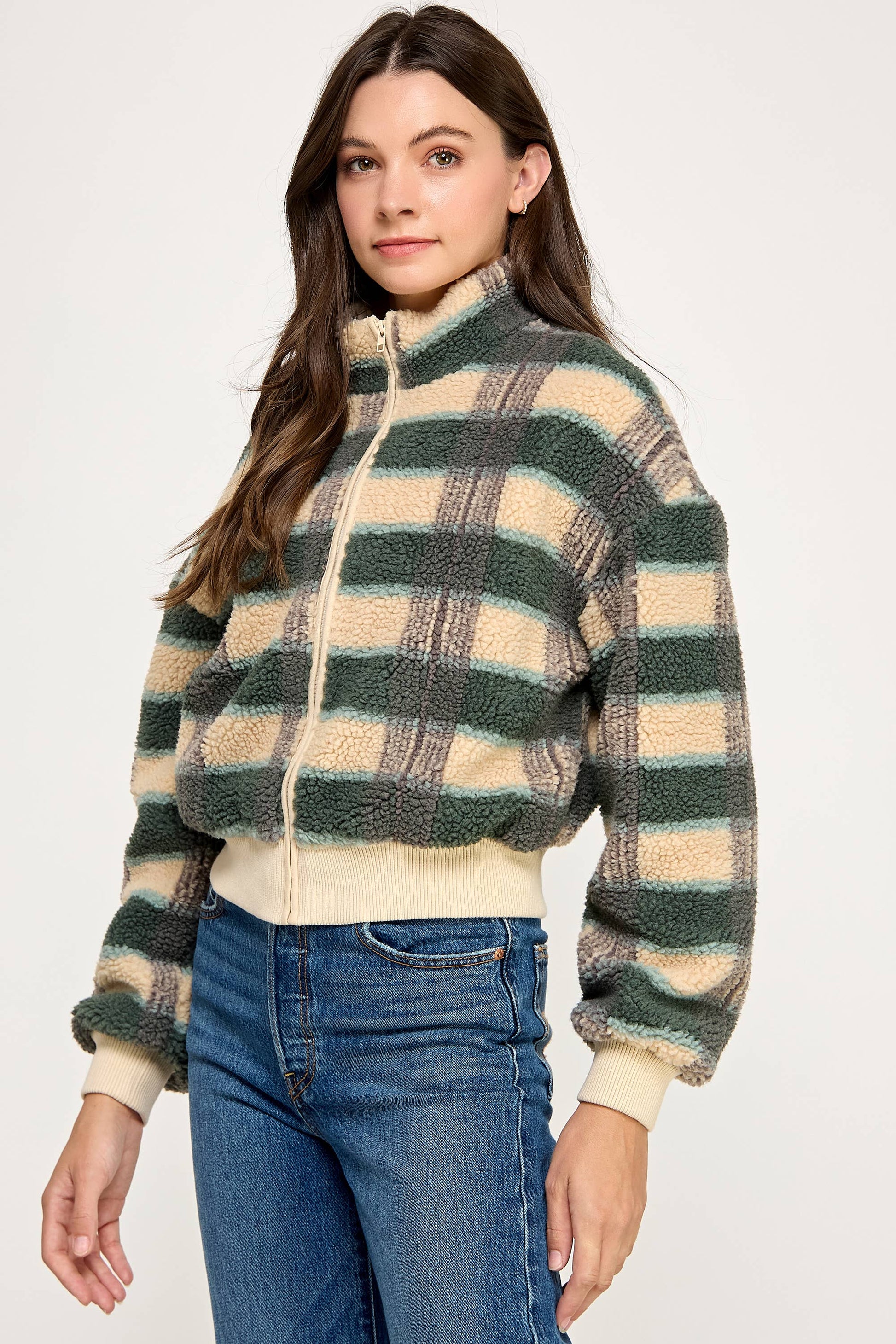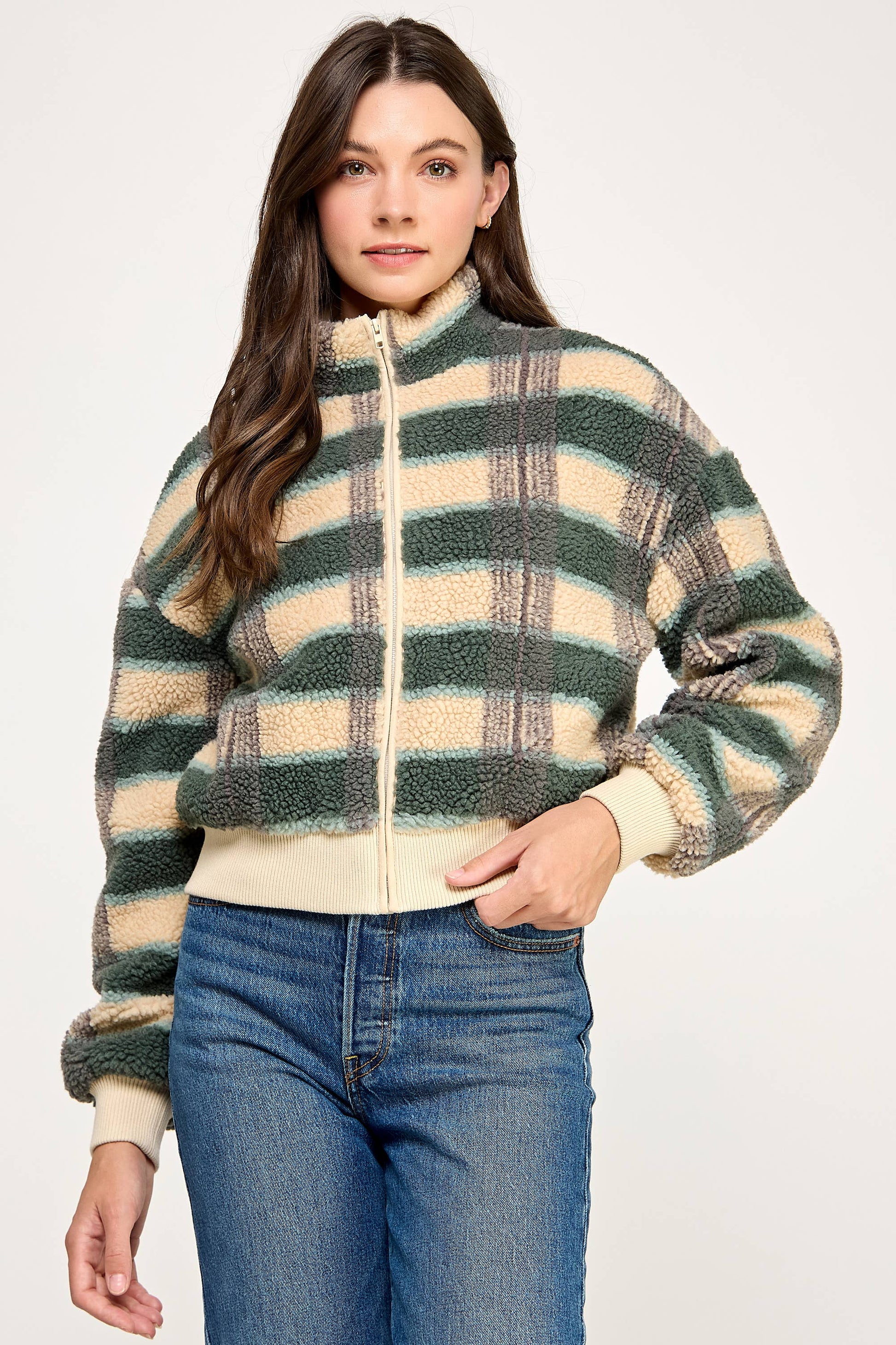 THIS PLAID SHERPA JACKET COMBINES COZY COMFORT WITH CLASSIC STYLE.