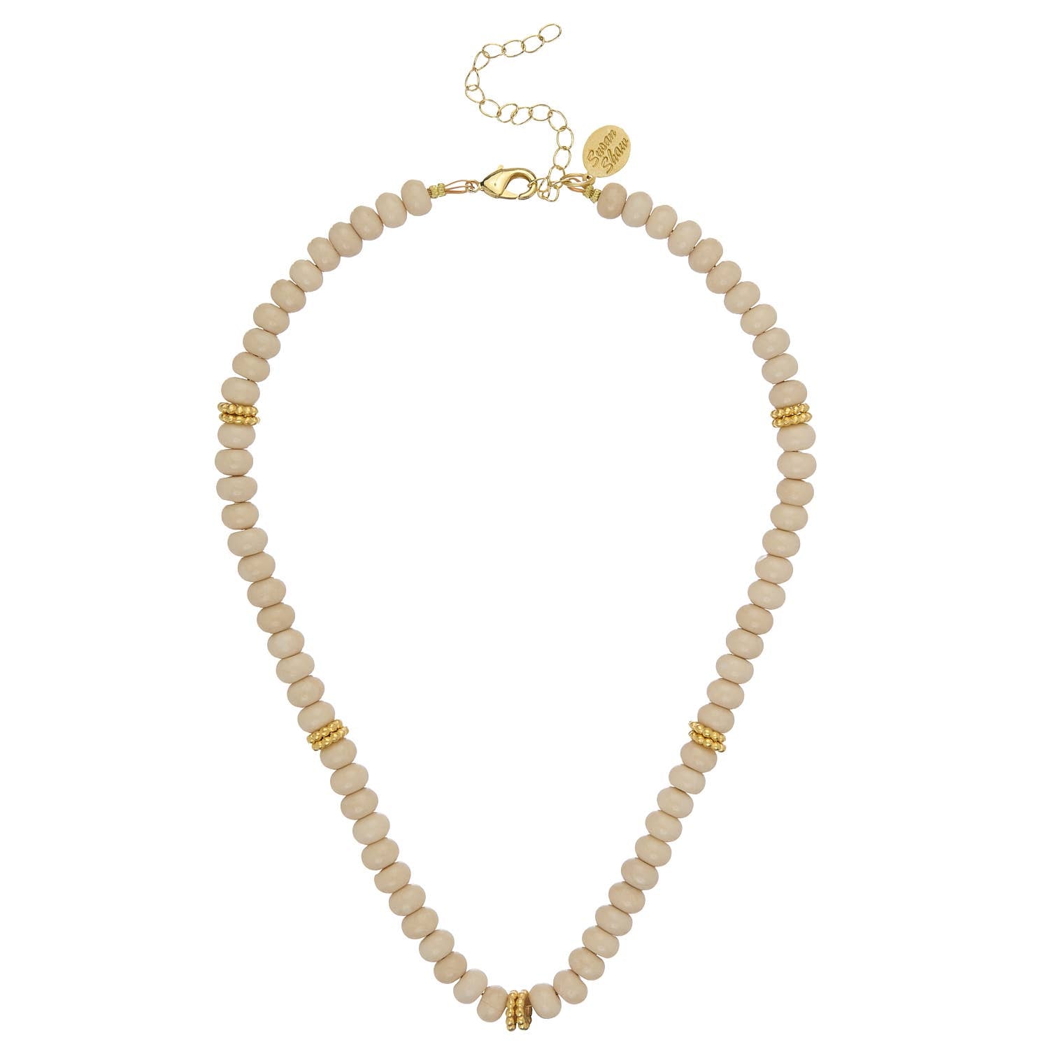 The Sand and Gold Bead Necklace by Susan Shaw is an exquisite piece that showcases the brand's unique and elegant design. Inspired by European styling and made with American materials, it's a versatile addition to your jewelry collection. This handmade necklace reflects over four decades of design expertise, making it more than just an accessory, but a timeless piece of art. Dress up for a special occasion or add a touch of sophistication to your look with this beautiful beaded necklace. Enjoy the luxury and quality that Susan Shaw offers.