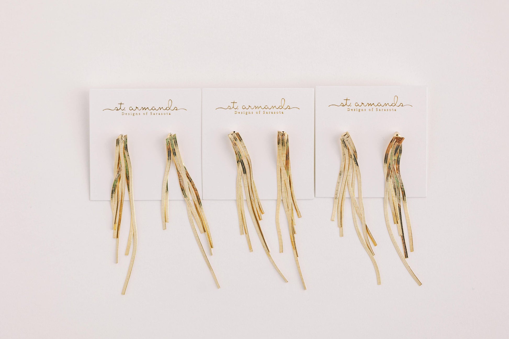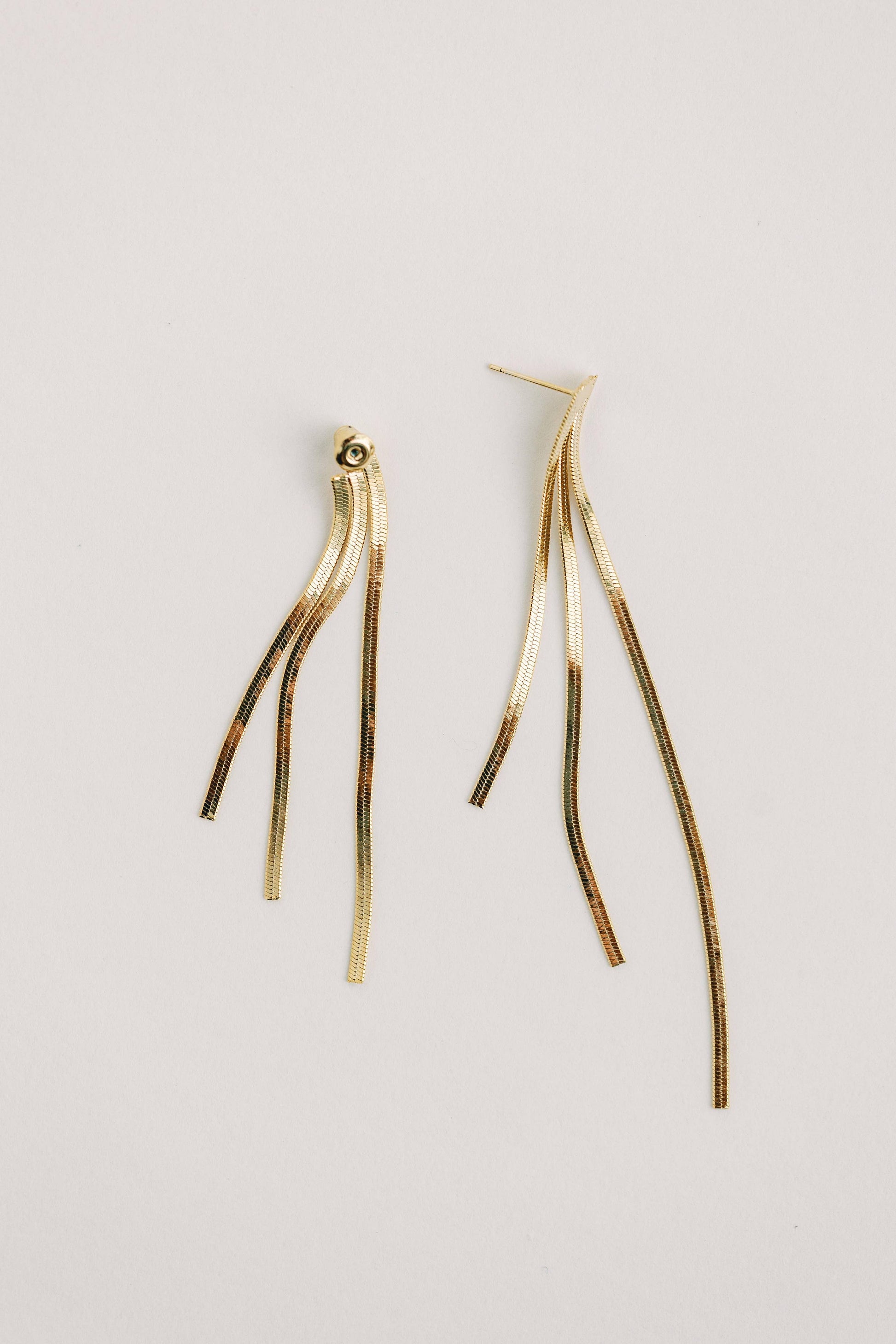 Skinny Gold Cascading Tassel Minimalist Statement Earrings